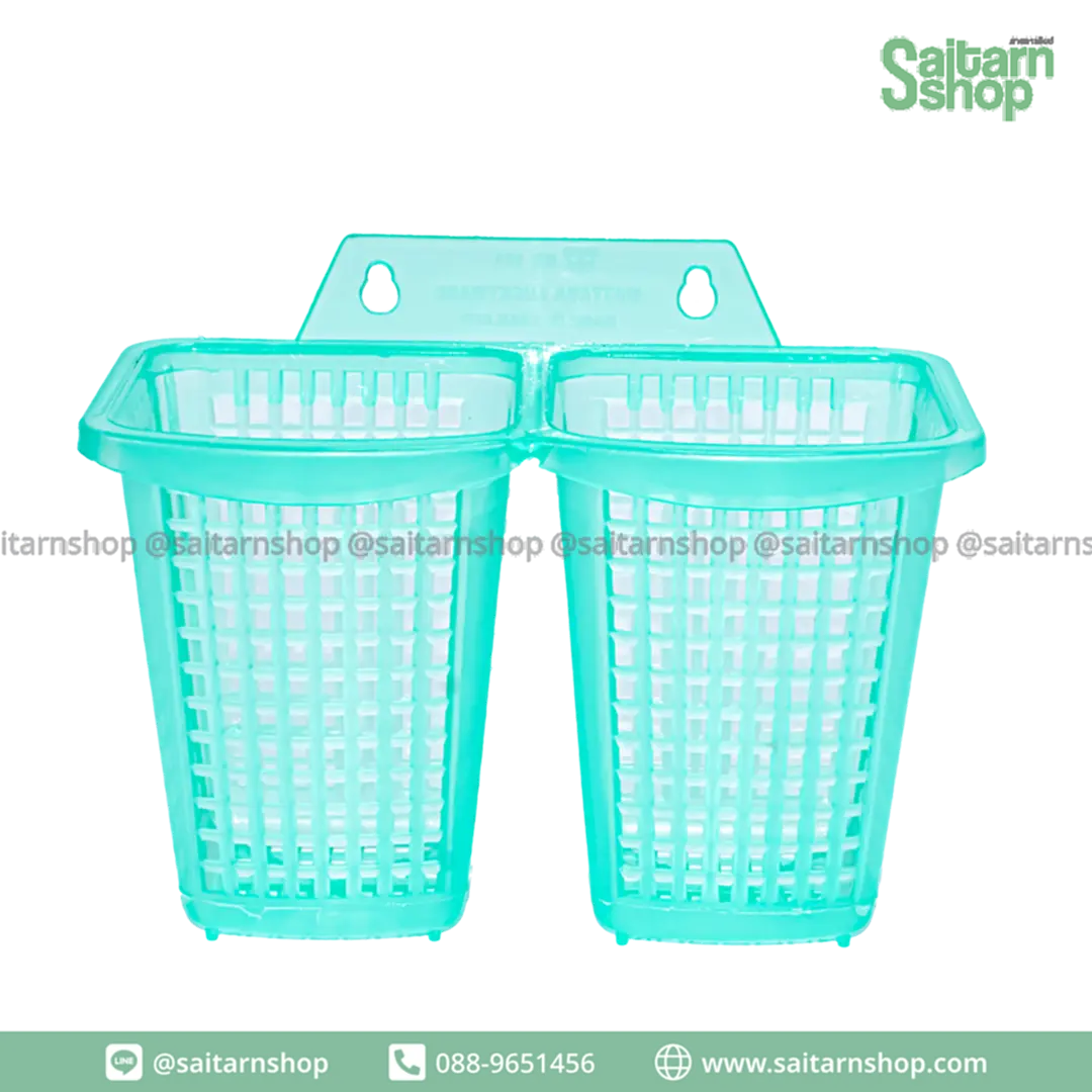 ที่ใส่ช้อนส้อมพลาสติก แบบ 2 ช่อง ตราลัคกี้ ที่ใส่ช้อน ที่วางช้อน ที่ใส่ตะเกียบ ใส่ช้อนคู่ เจาะแขวนผนังได้