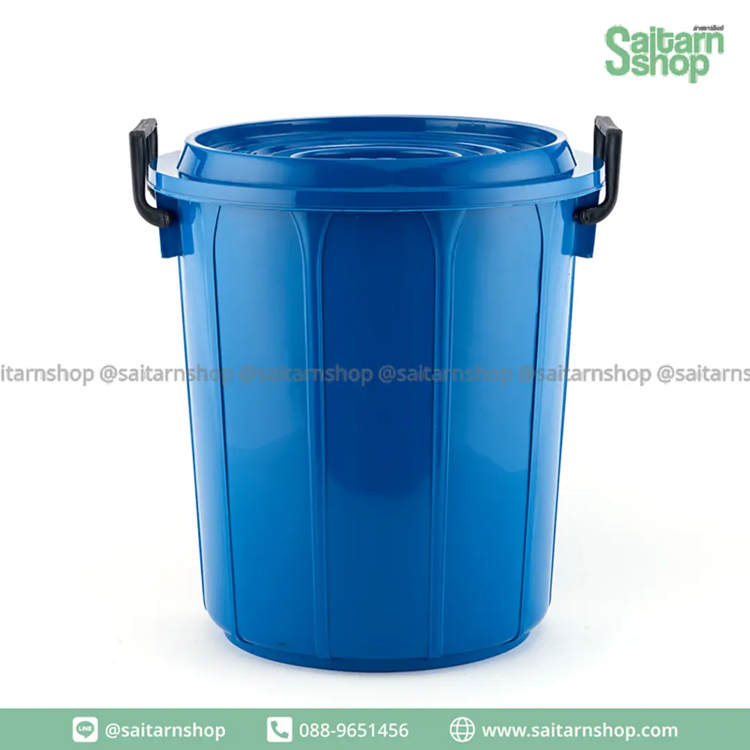 ถังน้ำหูจับถังพร้อมฝา ถังน้ำฝาปิด ถังอาบน้ำ ถังพลาสติกทรงสูง ถังอเนกประสงค์ สีดำ No.22 ช้างไทยรัฐ