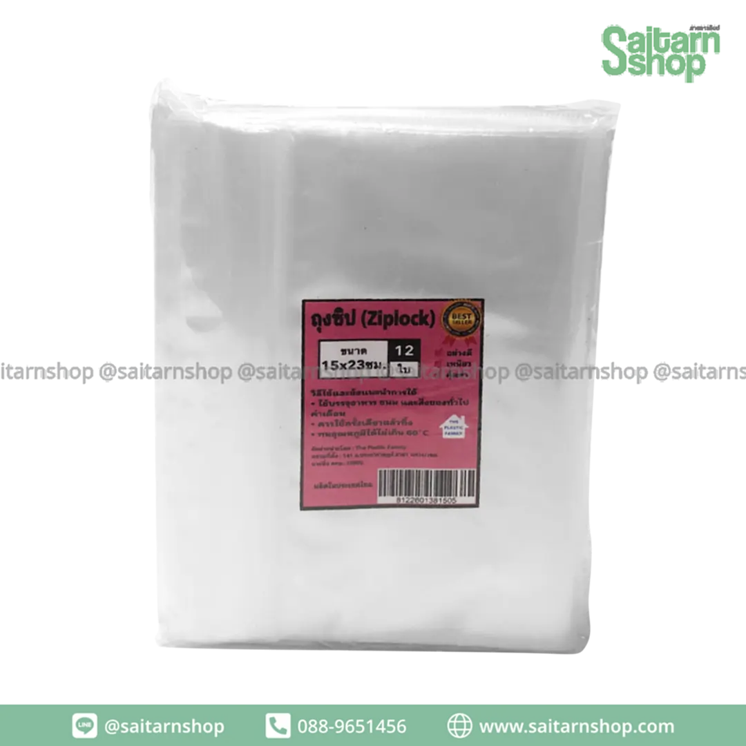 Ziplock ถุงซิป ถุงซิปล็อค ถุงซิปใส่ยา ถุงซิปล็อคใส่อาหาร ซองซิป ถุงซิปใส 15*23 ซม. 1แพ็ค12ใบ tpf