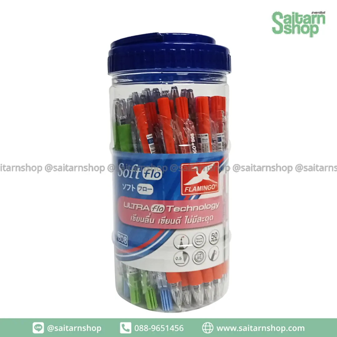 ปากกาลูกลื่นแบบกด Soft flo B08 1x50 Flamingo