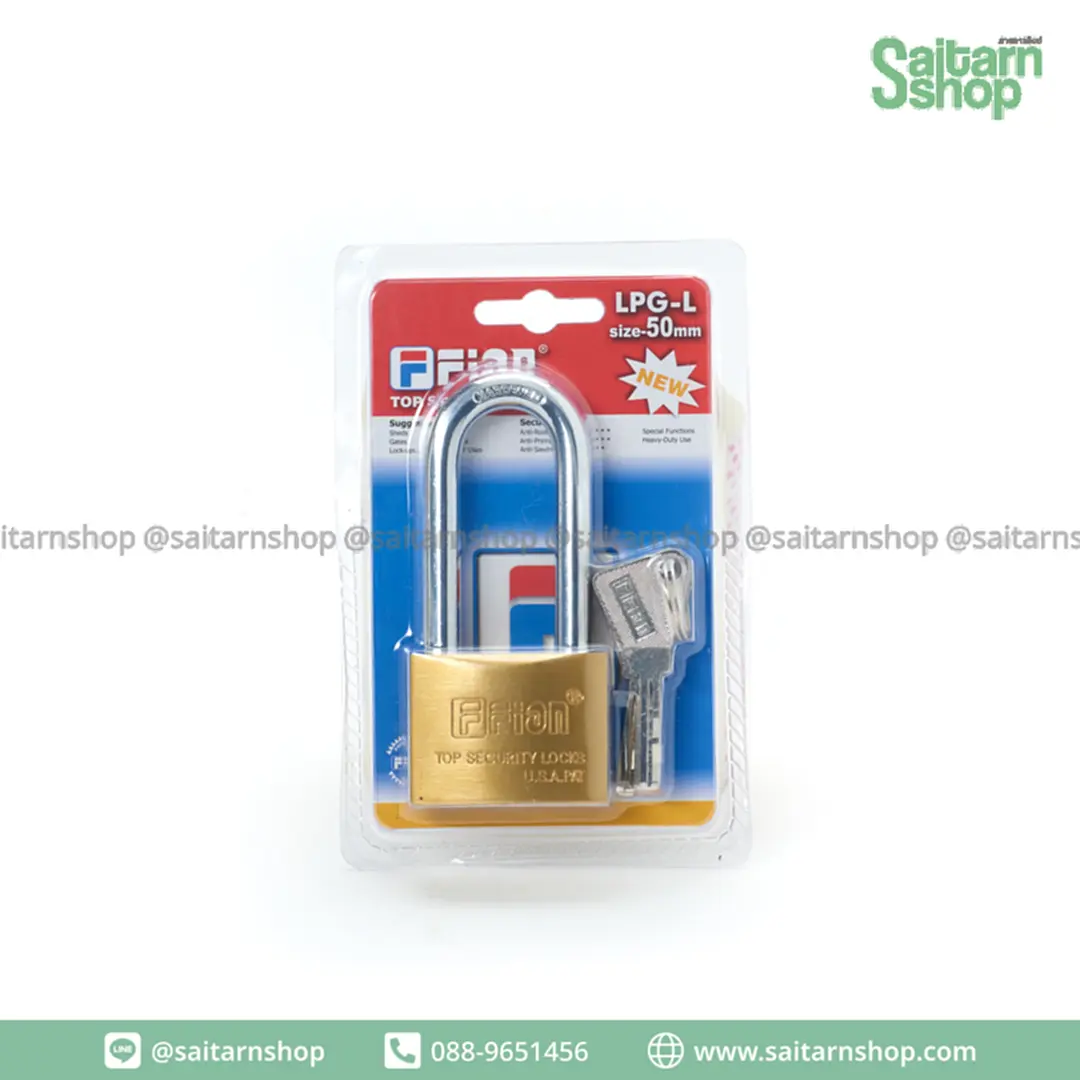 แม่กุญแจล็อคพร้อมลูกกุญแจ สีทอง 50 มม คอยาว Fion