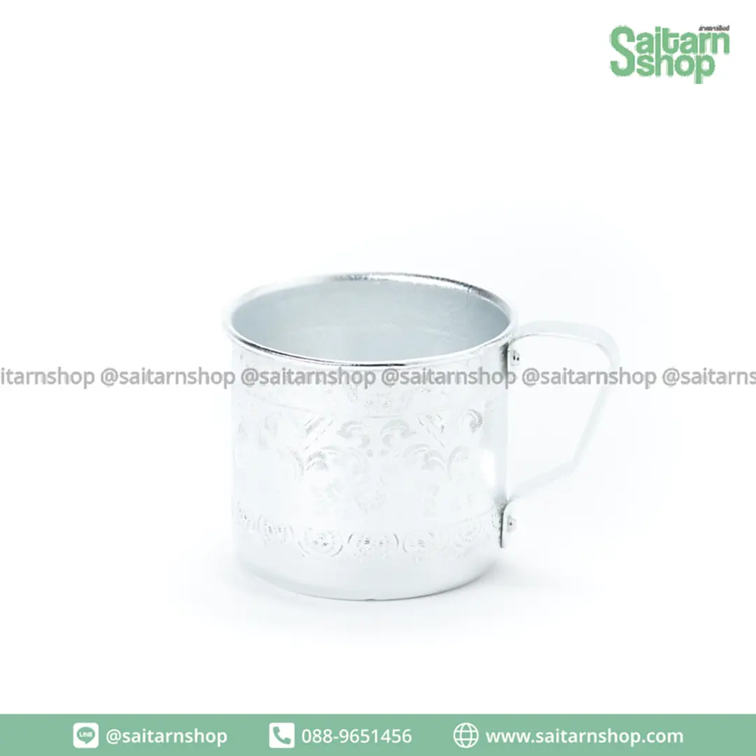 พานขัน ชุดขันตักบาตร ขันน้ำพร้อมพานรองลายไทย พานรองขันเงินอลูมิเนียม 18 ซม. ลายกนก ตราเพชร