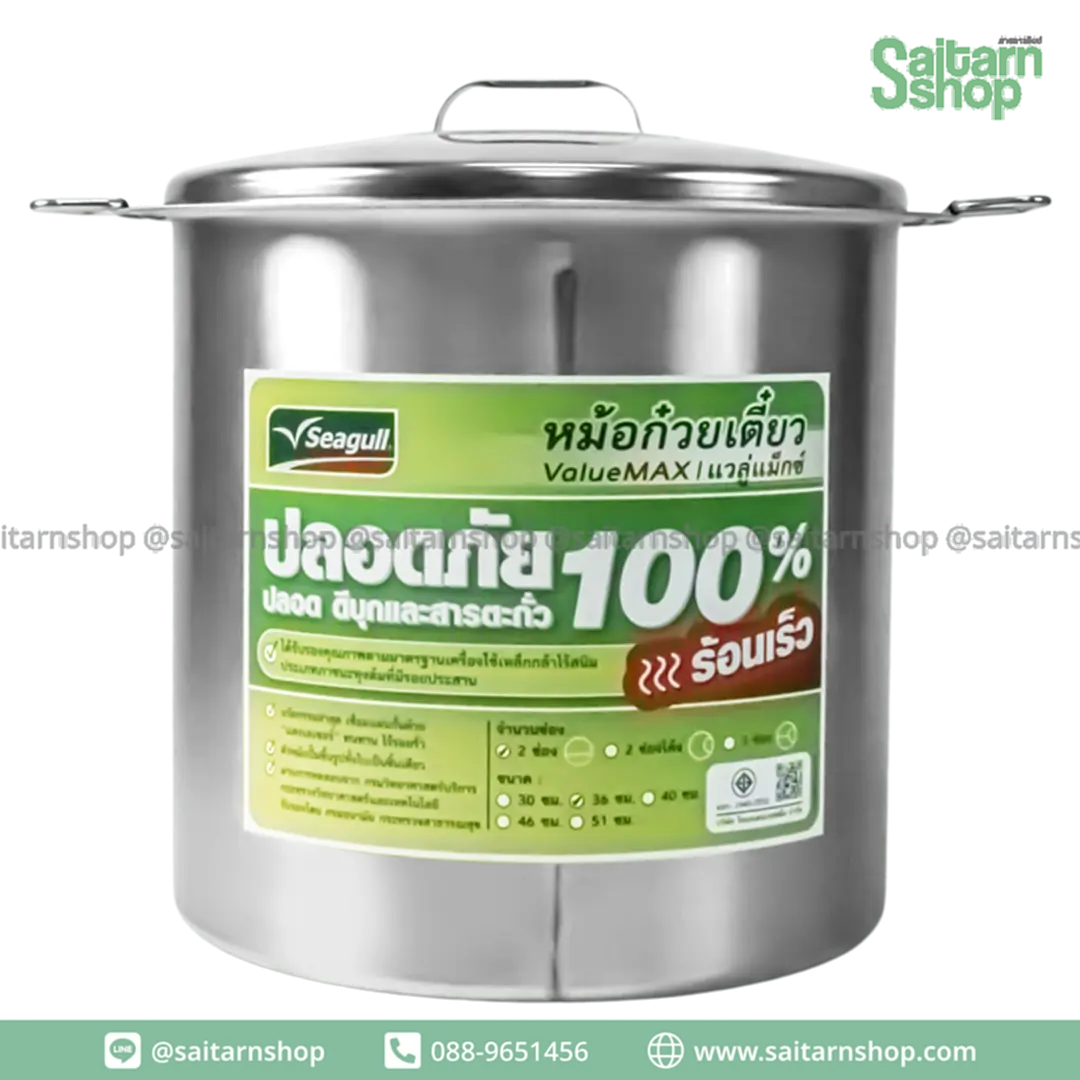 Seagull (นกนางนวล) หม้อก๋วยเตี๋ยว แวลู่ แม็กซ์ 30 ซม 2 ช่อง (12 นิ้ว) หม้อก๋วยเตี๋ยว สแตนเลสแท้ คุณภาพดี แข็งแรง ทนทาน