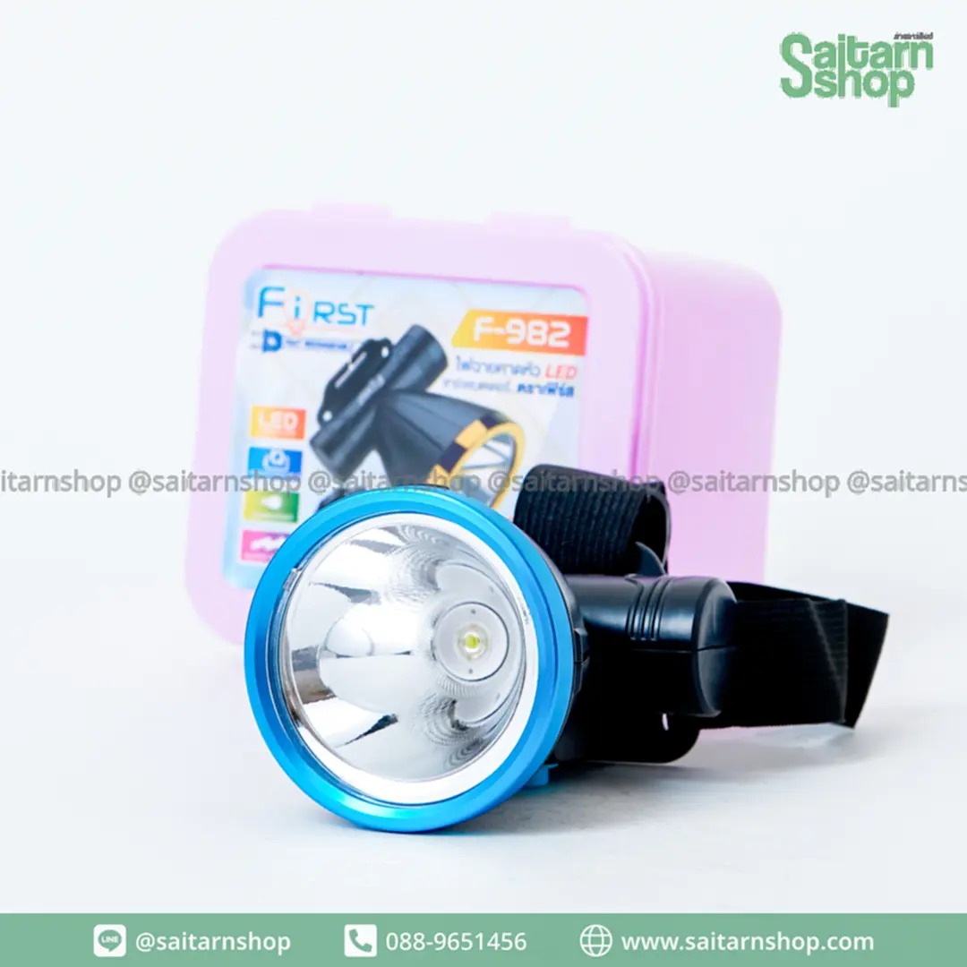 ไฟฉายคาดหัวใหญ่ CKML LED 981 HEAD LIGHT 200 วัตต์ กรอบไฟสีฟ้า พร้อมสายรัดหัว No.982