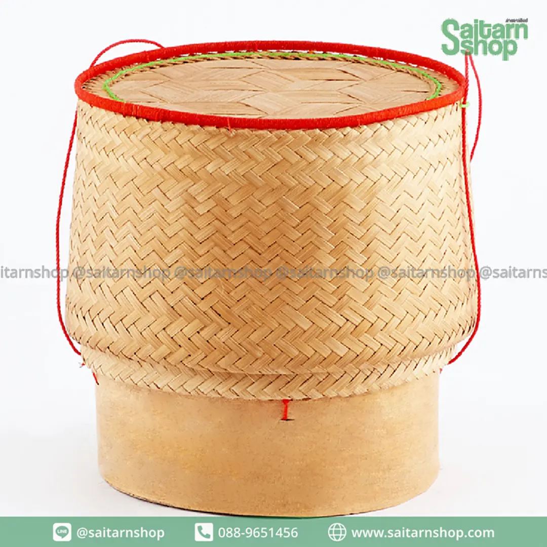 กระติ๊บข้าวไม้ไผ่กลม กระติ๊บข้าวเหนียว กระติ๊บข้าว แบบมีลวดลาย No.4 หมวด 3