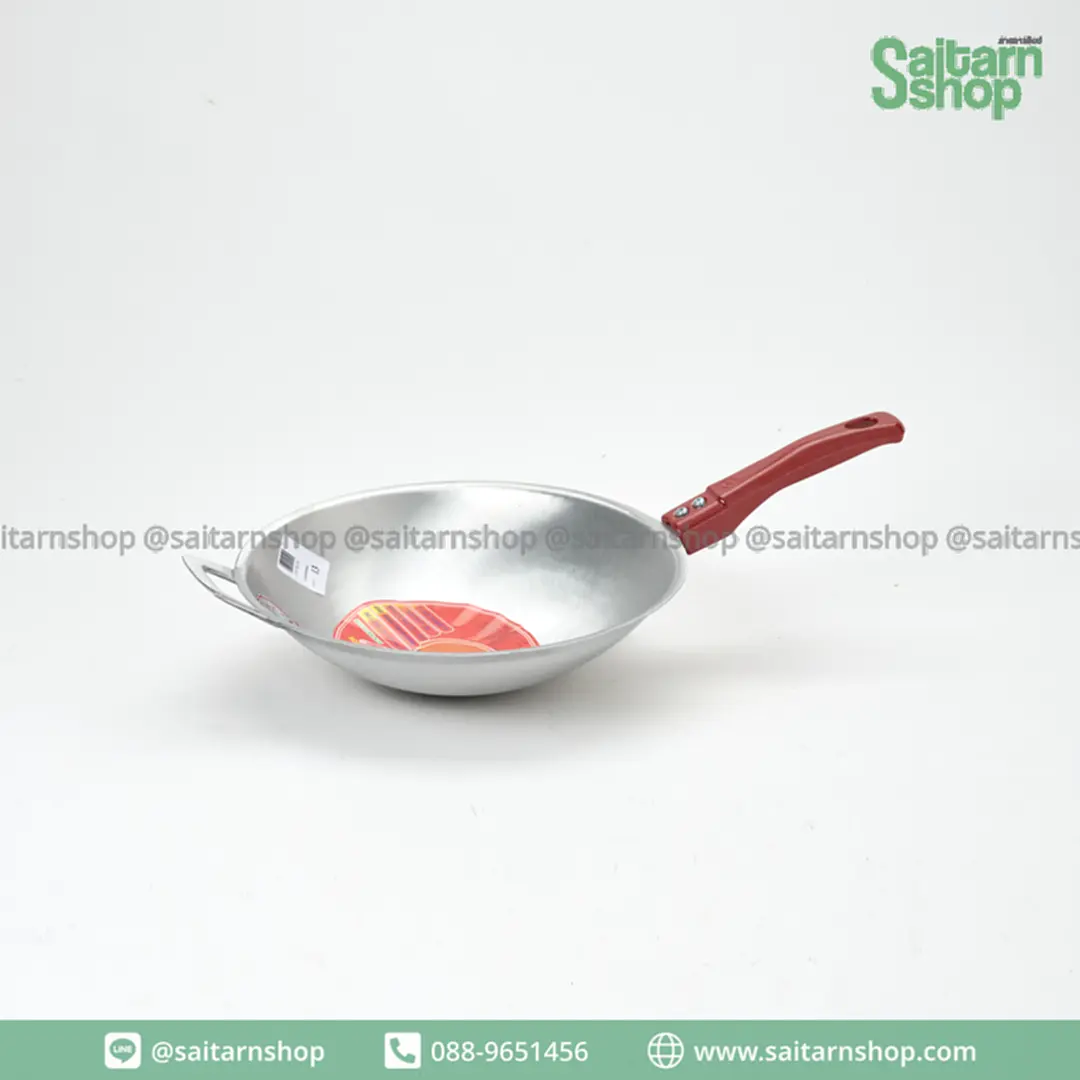 กระทะอลูมิเนียมขัดเงา พร้อมด้ามจับแดง ขนาด 13 นิ้ว ตรา นิวไลท์