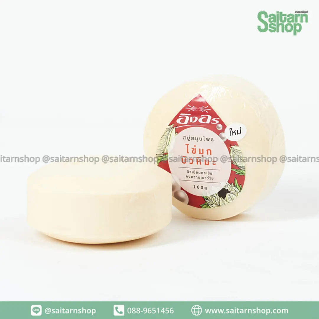 อิงอร สบู่สมุนไพร สบู่ก้อนกลม สบู่อาบน้ำ สูตรไข่มุกบัวหิมะ 1แพ็ค6ก้อน อิงอร
