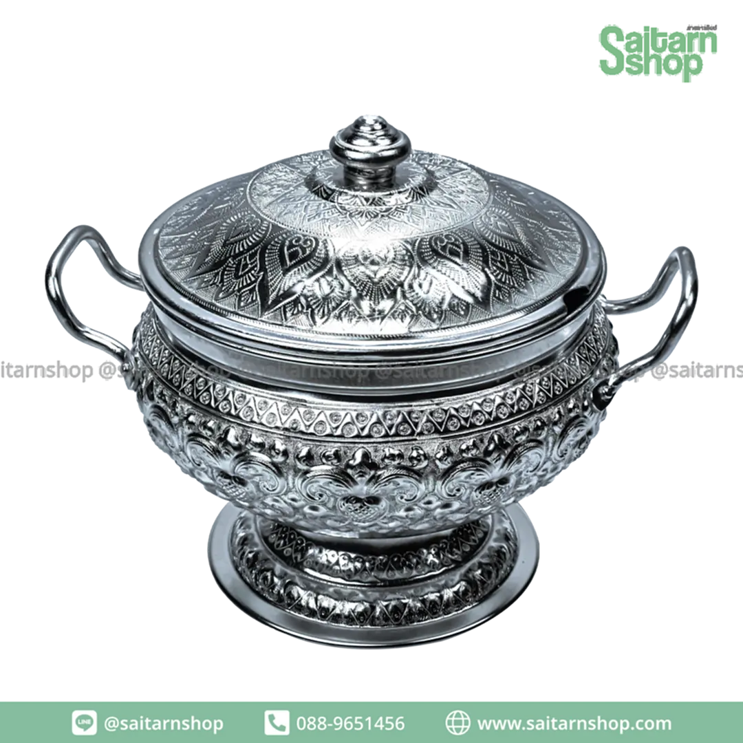 โถข้าวลายไทย ขนาด 20 ซม. ตรากระเช้า โถใส่ข้าว โถข้าวลายนูน คม ชัดสวยงาม ไม่ดำ ไม่เป็นสนิม