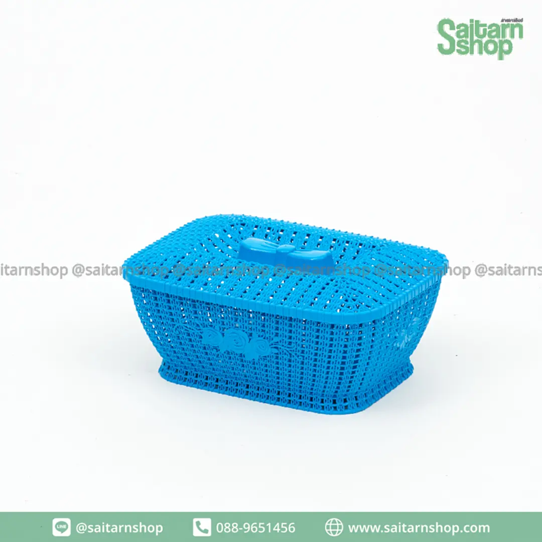ตะกร้าเหลี่ยมมีฝา ตะกร้าพลาสติกฝาปิด ตะกร้าใส่ของ ลายถักดอกไม้ No.8041 ช้าง