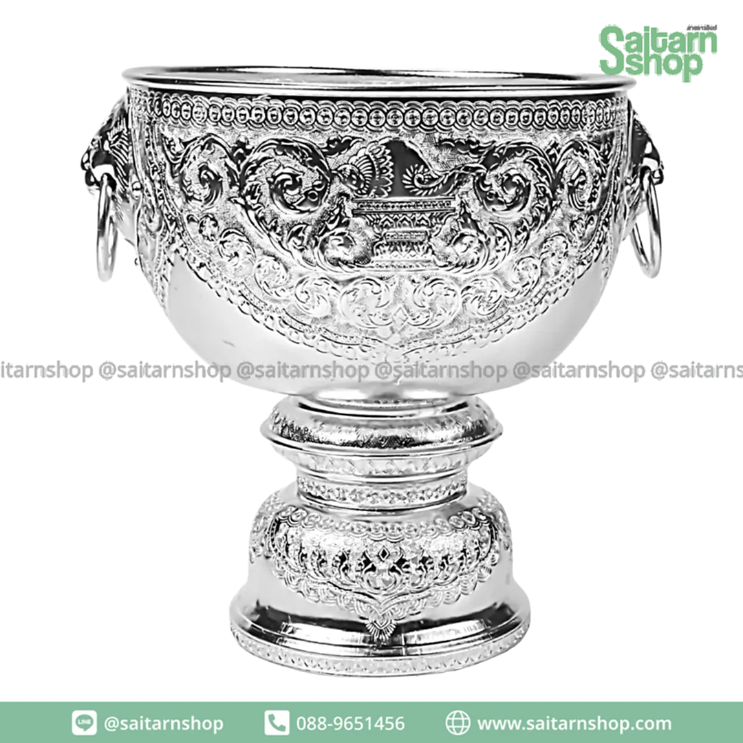 ขันหัวสิงห์ สีเงิน ขนาด 22 ซม. มีบ่วง ตราหงส์ฟ้า อลูมิเนียมแท้ ไม่ลอก ไม่ดำ แข็งแรง ทนทาน