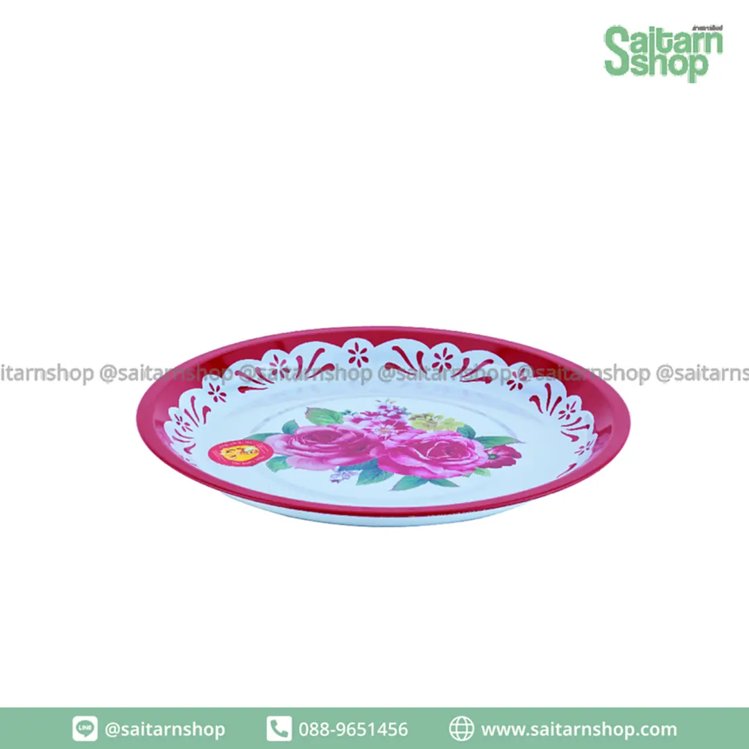ถาดสแตนเลสกลม เคลือบลายดอกไม้ ถาดเคลือบโบราณ NO.30 นก