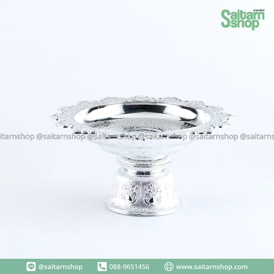 พานขัน ชุดขันตักบาตร ขันน้ำพร้อมพานรองลายไทย พานรองขันเงินอลูมิเนียม 20 ซม. ตราผึ้ง