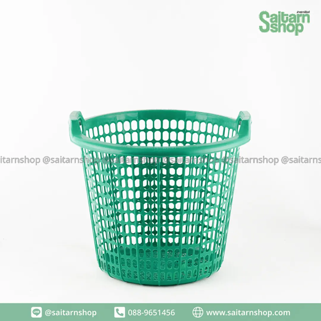 ตะกร้ากลมทรงสูง ตะกร้าผ้า ตะกร้ามีหูจับ ตะกร้าพลาสติก ตะกร้าใส่ของ อเนกประสงค์ สีทึบ No.808 BP