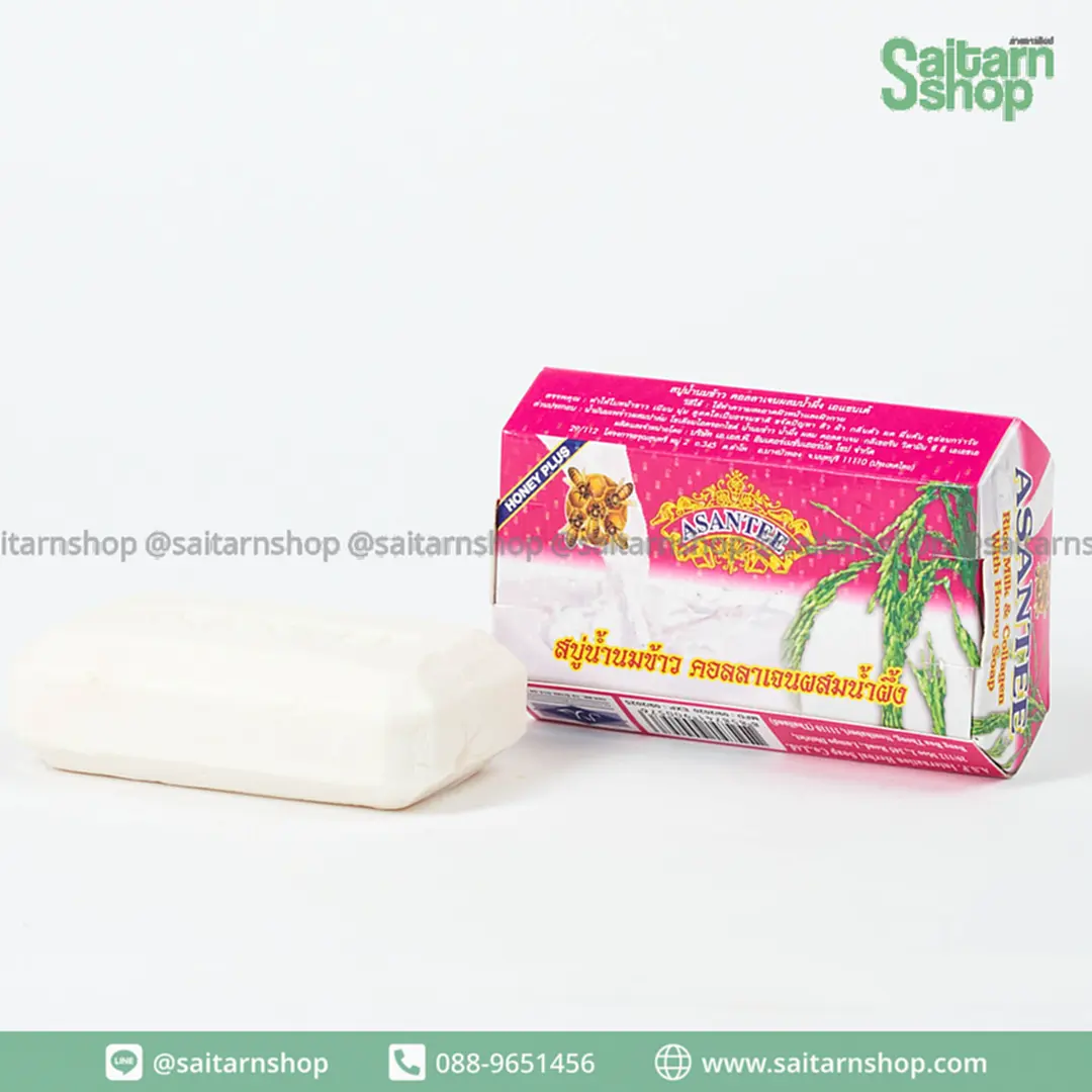 Asantee สบู่สมุนไพรเอแซนเต้ สบู่อาบน้ำ สบู่ก้อน สูตรน้ำนมข้าว คอลลาเจนผสมน้ำผึ้ง 125 กรัม เอเซนเต้