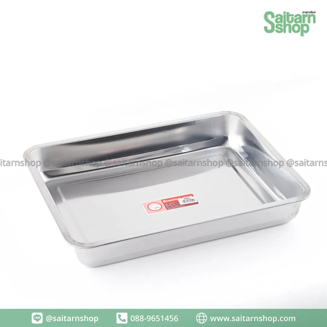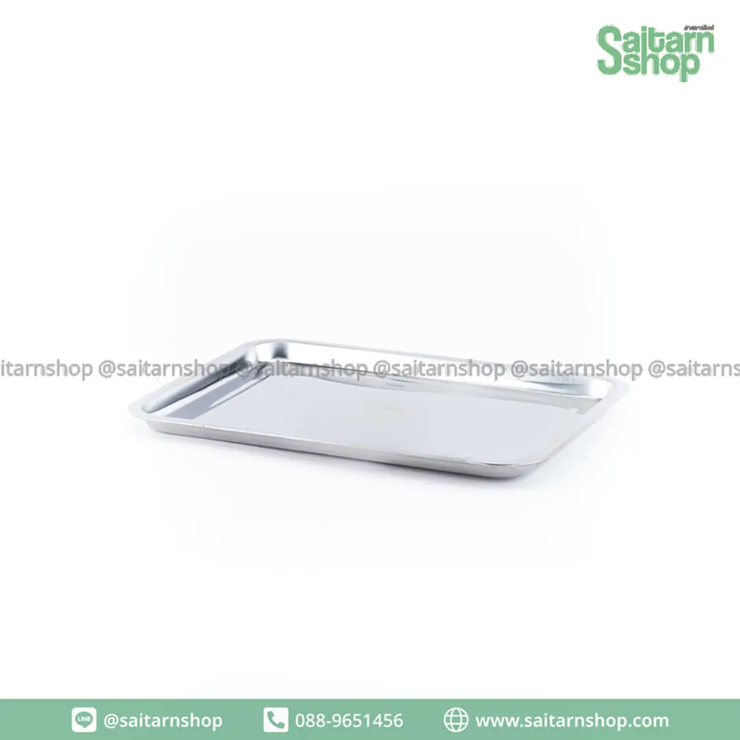ถาดอาหาร ถาดสแตนเลส ถาดสี่เหลี่ยม ถาดวางเครื่องมือ อเนกประสงค์ ทรงลึก NO.45x35x7 ภูเขา