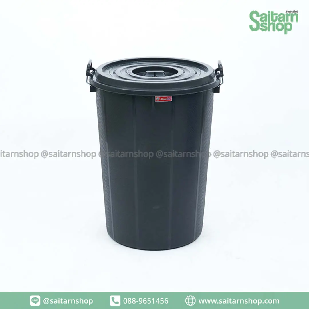 ถังน้ำหูจับ ถังน้ำฝาปิด ถังอาบน้ำ ถังพลาสติกทรงสูง ถังอเนกประสงค์ สีดำ NO.40 K ตรางู