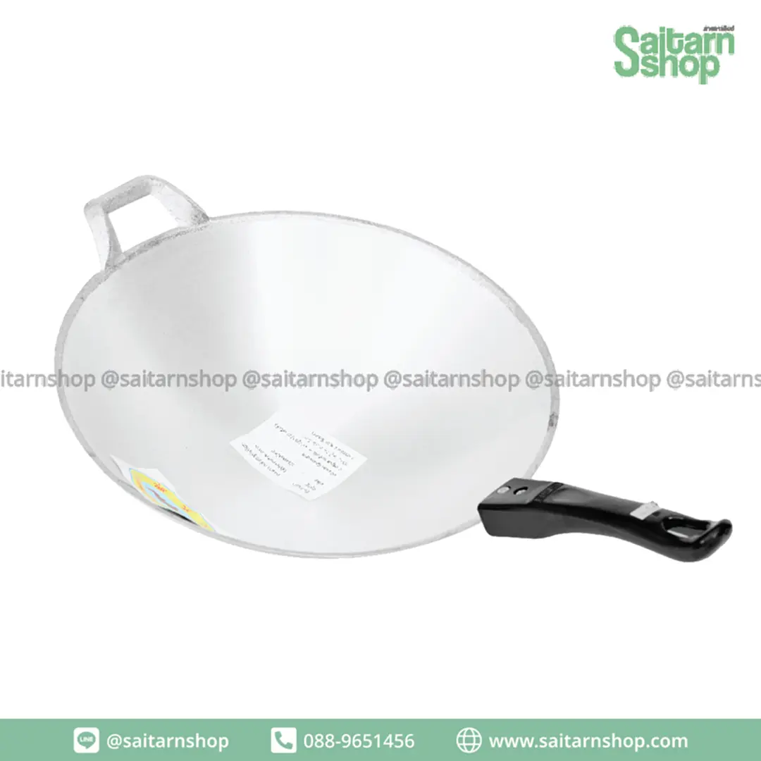 กระทะ กระทะก้นลึก กระทำขัดเงา กระทะอลูมิเนียม ด้ามดำ No.14 เข้