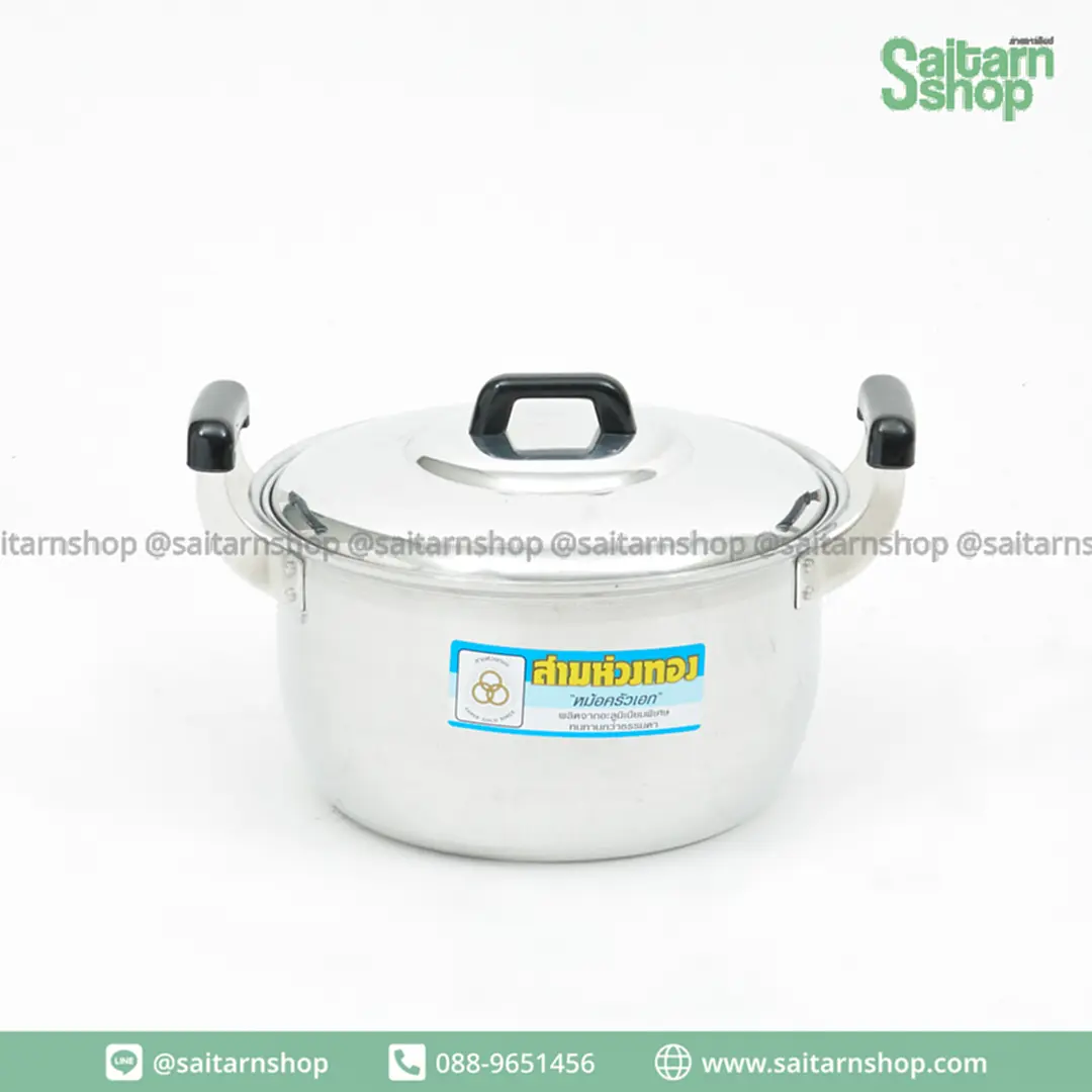 หม้อ 2 หู หม้อหุงต้ม หม้อแกง หม้อข้าว หม้ออลูมิเนียม 26 ซม. ตราสามห่วงทอง