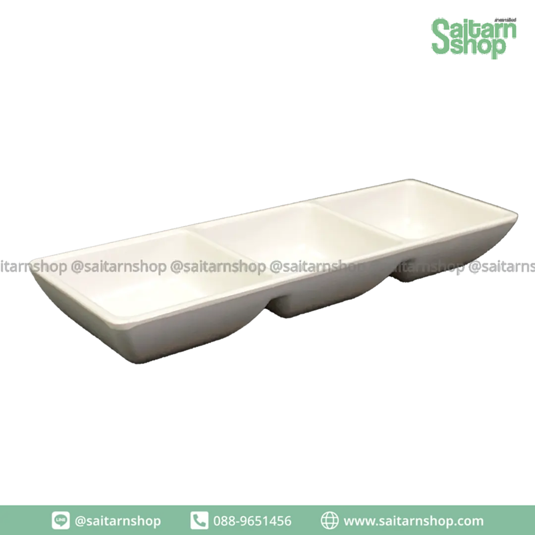 ถ้วยน้ำจิ้ม ถ้วยคัพเค้ก ถ้วยน้ำจิ้มเหลี่ยม ถ้วยน้ำจิ้มเมลามีน 3 ช่อง 7.5 นิ้ว No.B6061-7.5 สยามเบส
