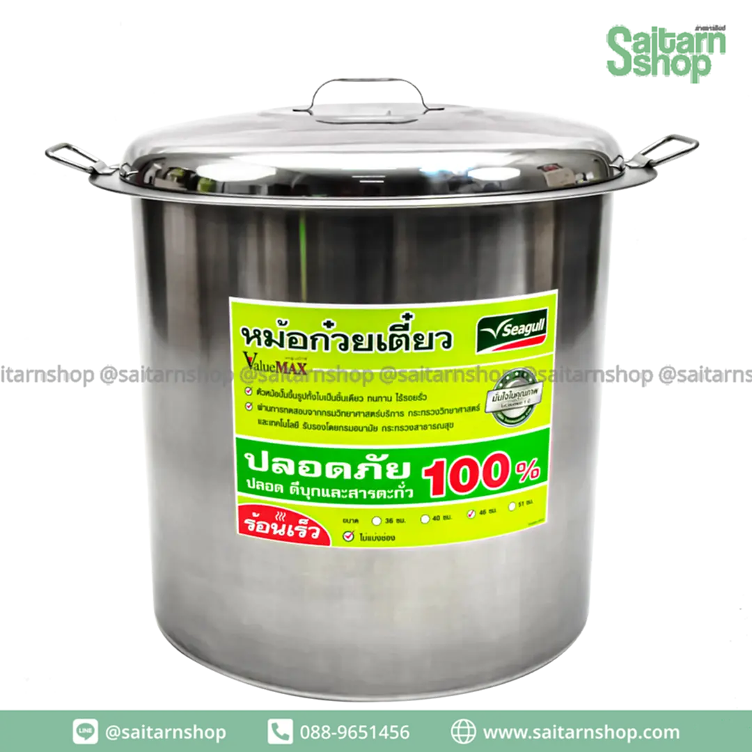 หม้อก๋วยเตี๋ยวแวลู่แม็กซ์ 46ซม. 1ช่อง 18นิ้ว ความจุ 73 ลิตร สเตนเลส Seagull นกนางนวล ทนทาน ปลอดภัย ไร้สารตะกั่ว