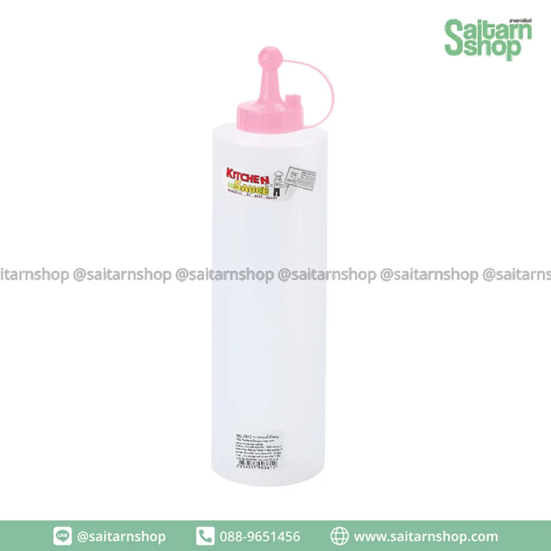 ขวดซอสจัมโบ้ ขวดบีบ ขวดซอสฝาสี ขวดซอสพลาสติกใส No.7013 เบสกลาส