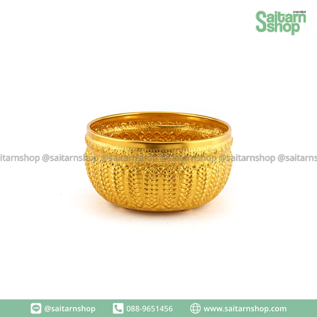 ขันอลูมิเนียมลายไทย ขันเงิน ขันทอง ขันน้ำ ของชำร่วย สีทอง 28 ซม. ดอกไม้