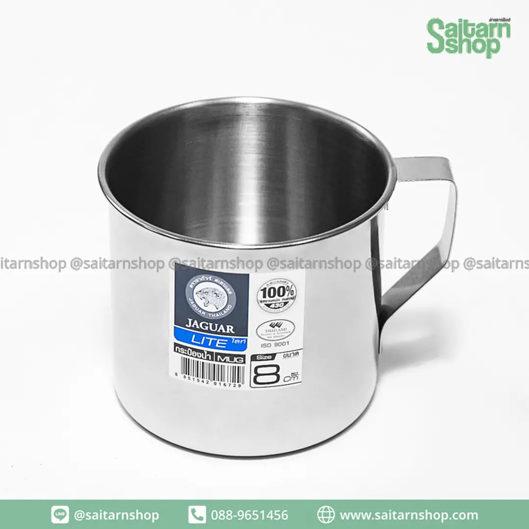 แก้วสแตนเลส ตราจากัวร์ มีหู แก้วน้ำสแตนเลส ขนาด 8 เซนติเมตร สแตนเลสคุณภาพดี ทน ใช้นาน รับประกันไม่ขึ้นสนิม