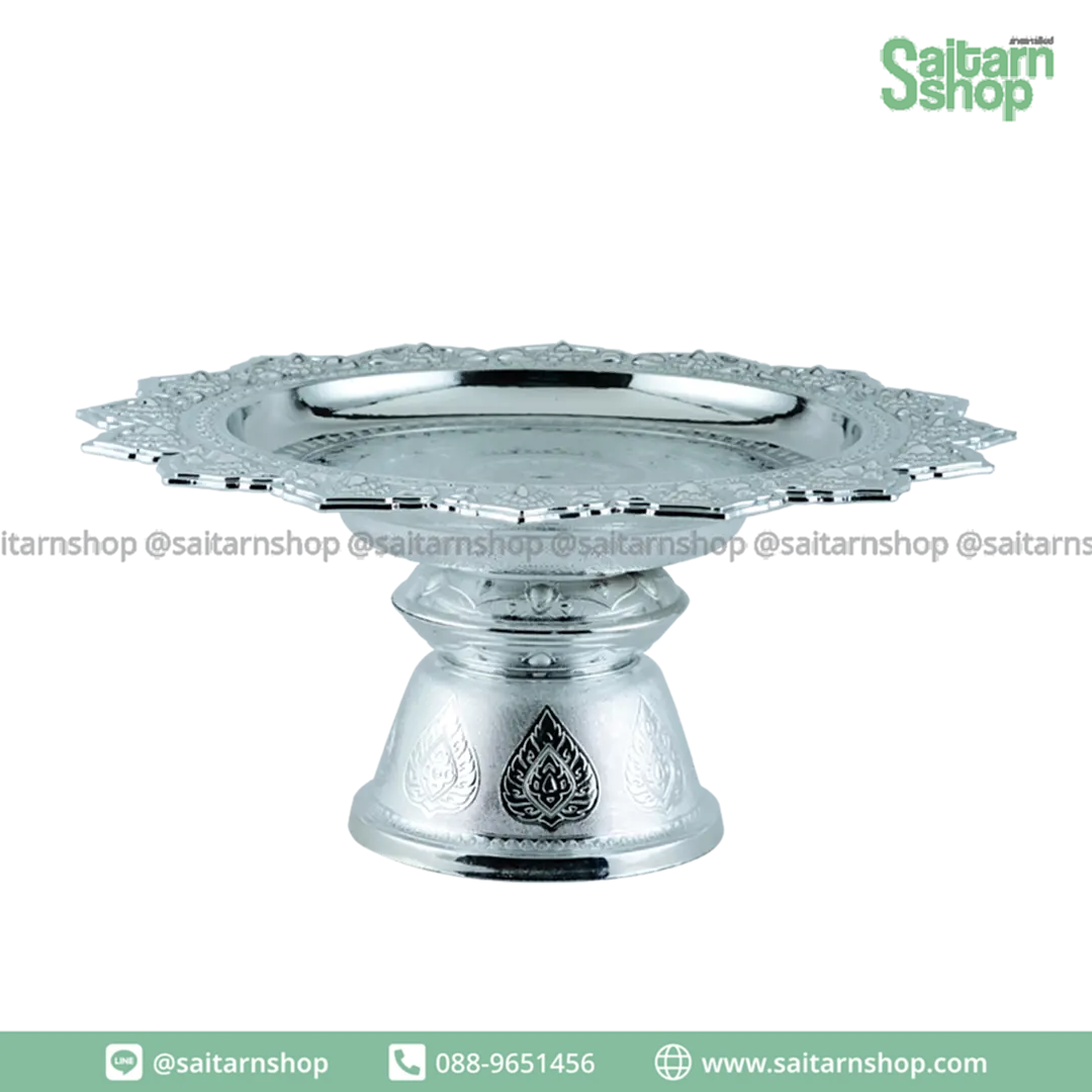 พานขัน ชุดขันตักบาตร ขันน้ำพร้อมพานรองลายไทย พานรองขันเงินอลูมิเนียม 20 ซม. ตราผึ้ง