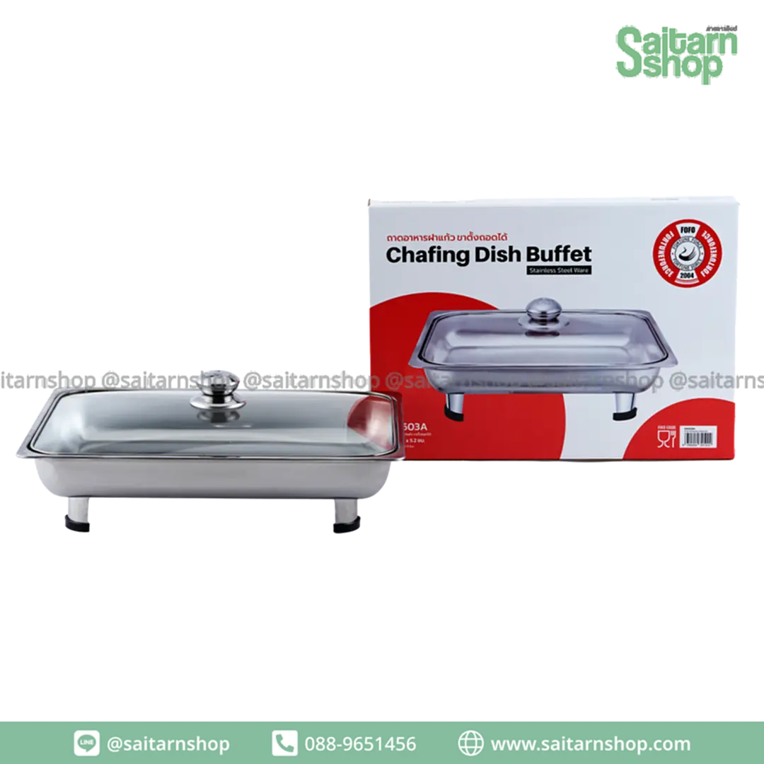 ถาดใส่อาหารสแตนเลส ถาดสแตนเลส ถาดฝาแก้ว ถาดบุฟเฟ่ต์ พร้อมขา No.30 FOFO