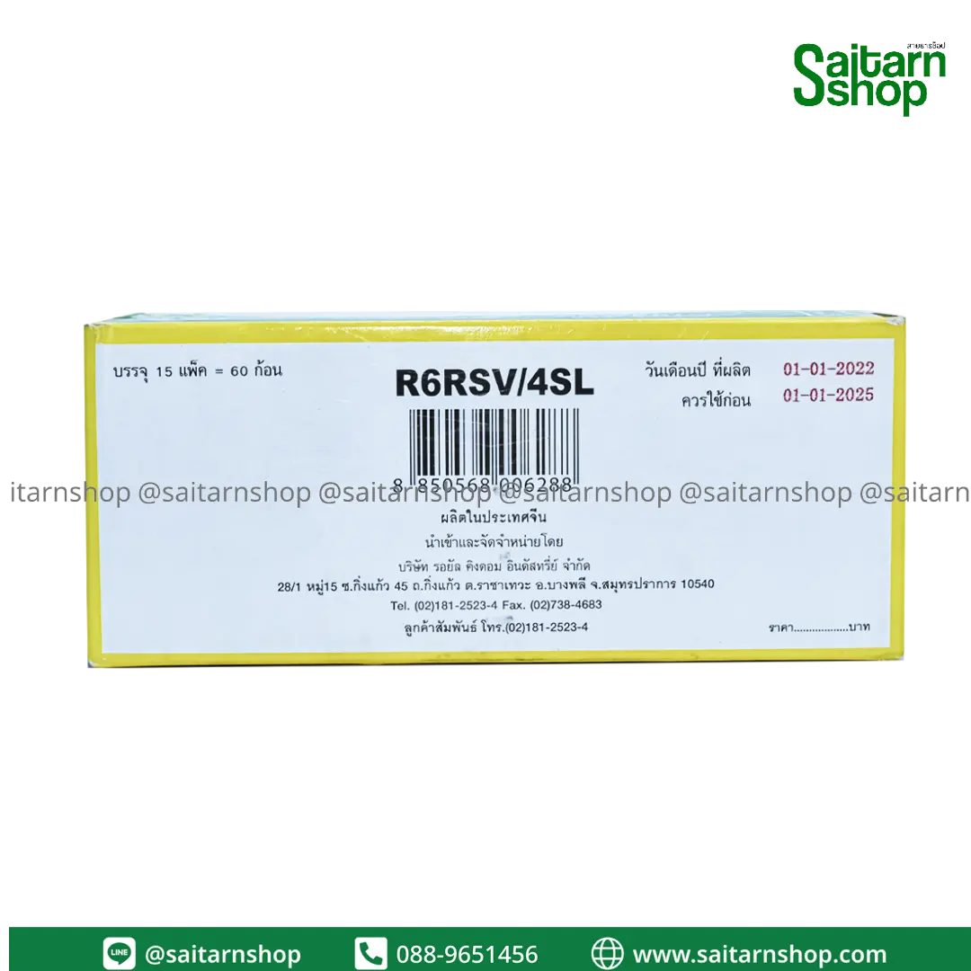 ให้ไฟอย่างเสถียรและต่อเนื่อง ให้พลังงาน 1.5V -ถ่านรุ่นนี้เป็นถ่านรุ่นนิยมมากที่สุด ได้รับมาตรฐานอุตสาหกรรม สินค้าไร้สารปรอท ปลอดภัยต่อผู้บริโภค ถ่านแบรนด์ไทย