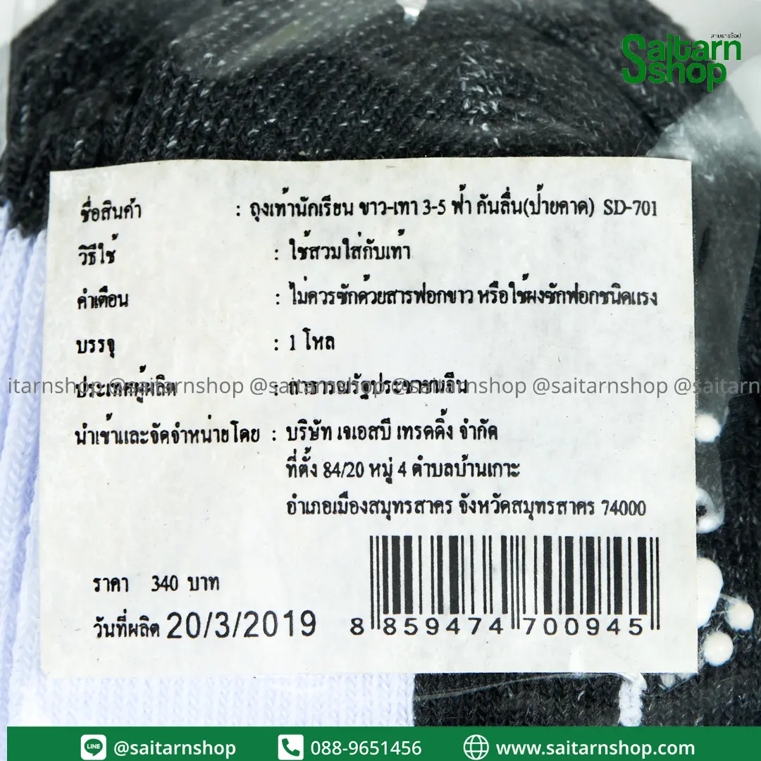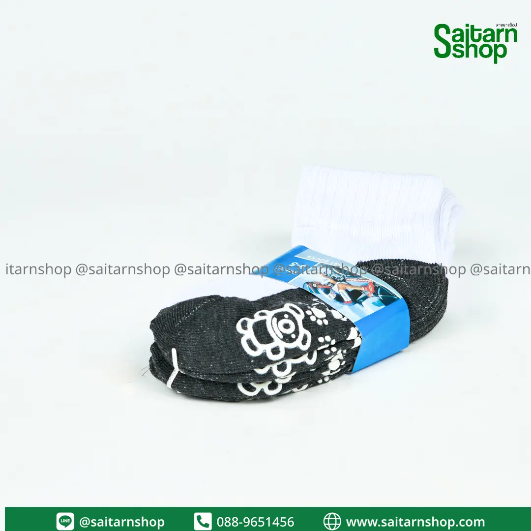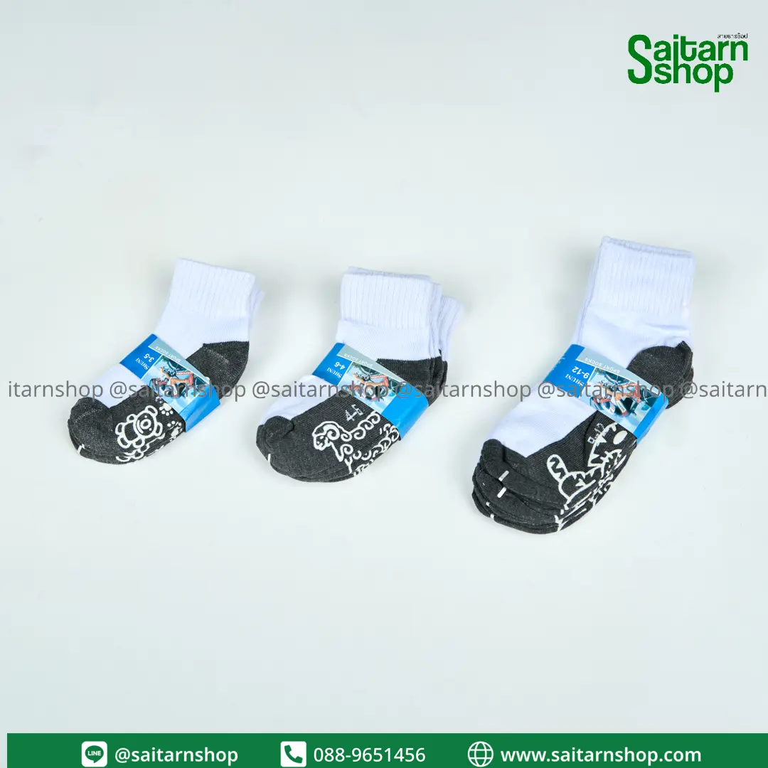 ถุงเท้านักเรียน ขาวพื้นเทากันลื่นเนื้อผ้าดี นิ่มใส่สบาย ระบายอากาศได้ดี ไม่อึดอัด มีกันลื่น