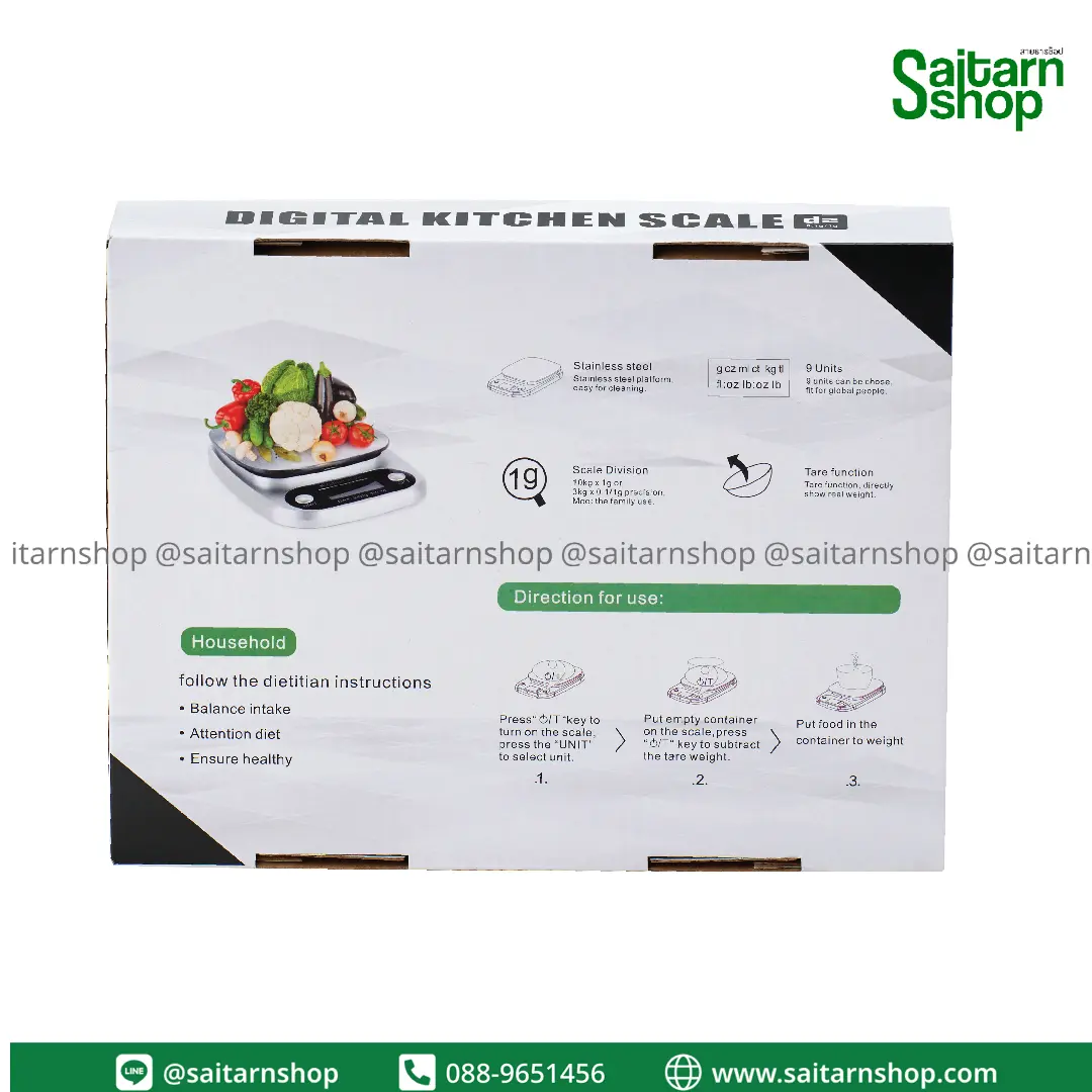 เครื่องชั่งดิจิตอล มี 4 หน่วยชั่งตวง กรัม/ปอนด์/ออนซ์ของเหลว/มิลลิลิตร ใช้ในครัวเรือนเท่านั้นห้ามใช้ชั่งซื้อ/ขาย ชั่งได้ตั้งแต่ 3-10
